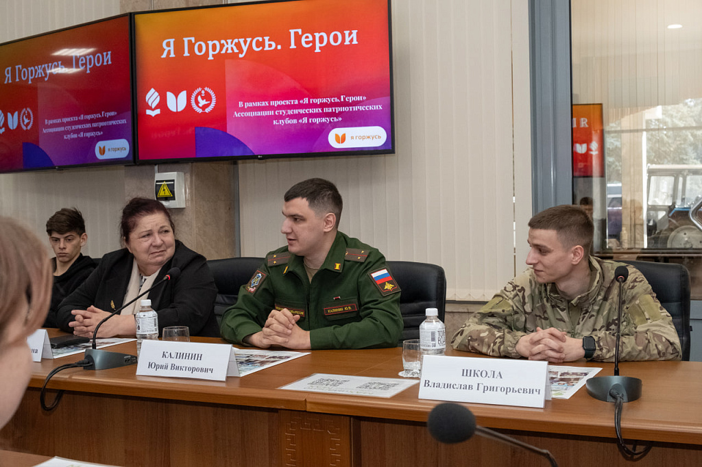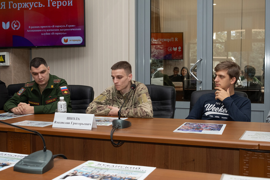 В Кубанском государственном аграрном университете состоялась встреча студентов с участниками специальной военной операции в рамках проекта «Я горжусь. Герои», который реализует Всероссийская ассоциация студенческих патриотических клубов.