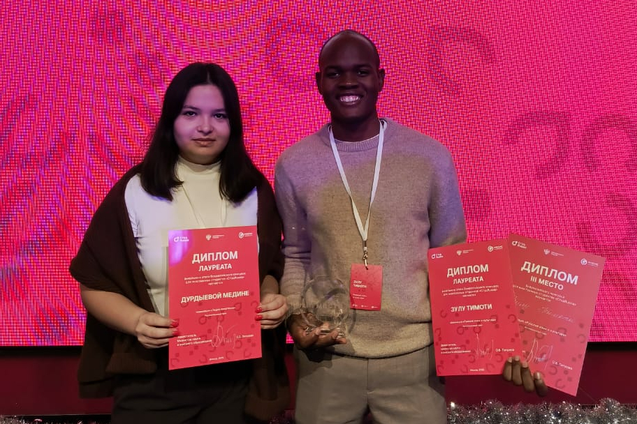 Наши студенты Зулу Тимоти был награжден дипломом за III место в номинации «Русский язык и культура», а Дурдыева Медине - награждена дипломом лауреата в номинации «Лидер поколения».