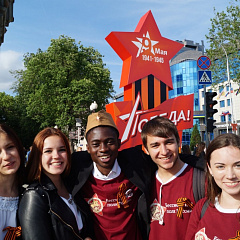 To organize the procession, hundreds of volunteers were involved, including volunteers from Kuban State Agrarian University. In front of the column, volunteers carried a two-hundred-meter-long copy of Victory Banner, a banner and flags with "Immortal Regiment" action symbol.