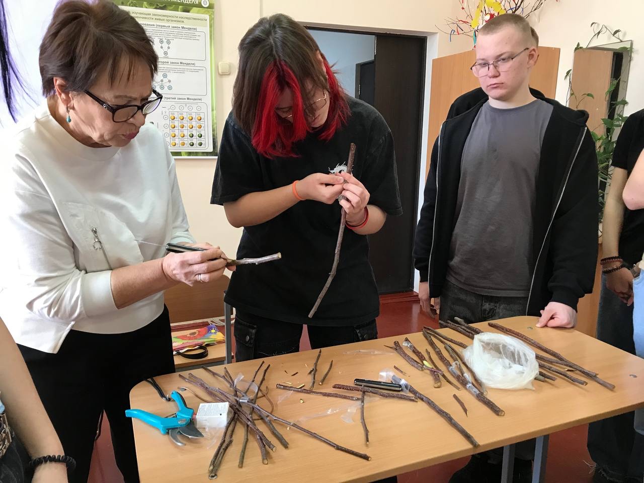 На мастер-классе «Методы прививки плодовых и ягодных культур» студенты освоили способы подготовки прививочного материала в весенний период в садах хозяйств – как личных, так и Брюховецкого района.