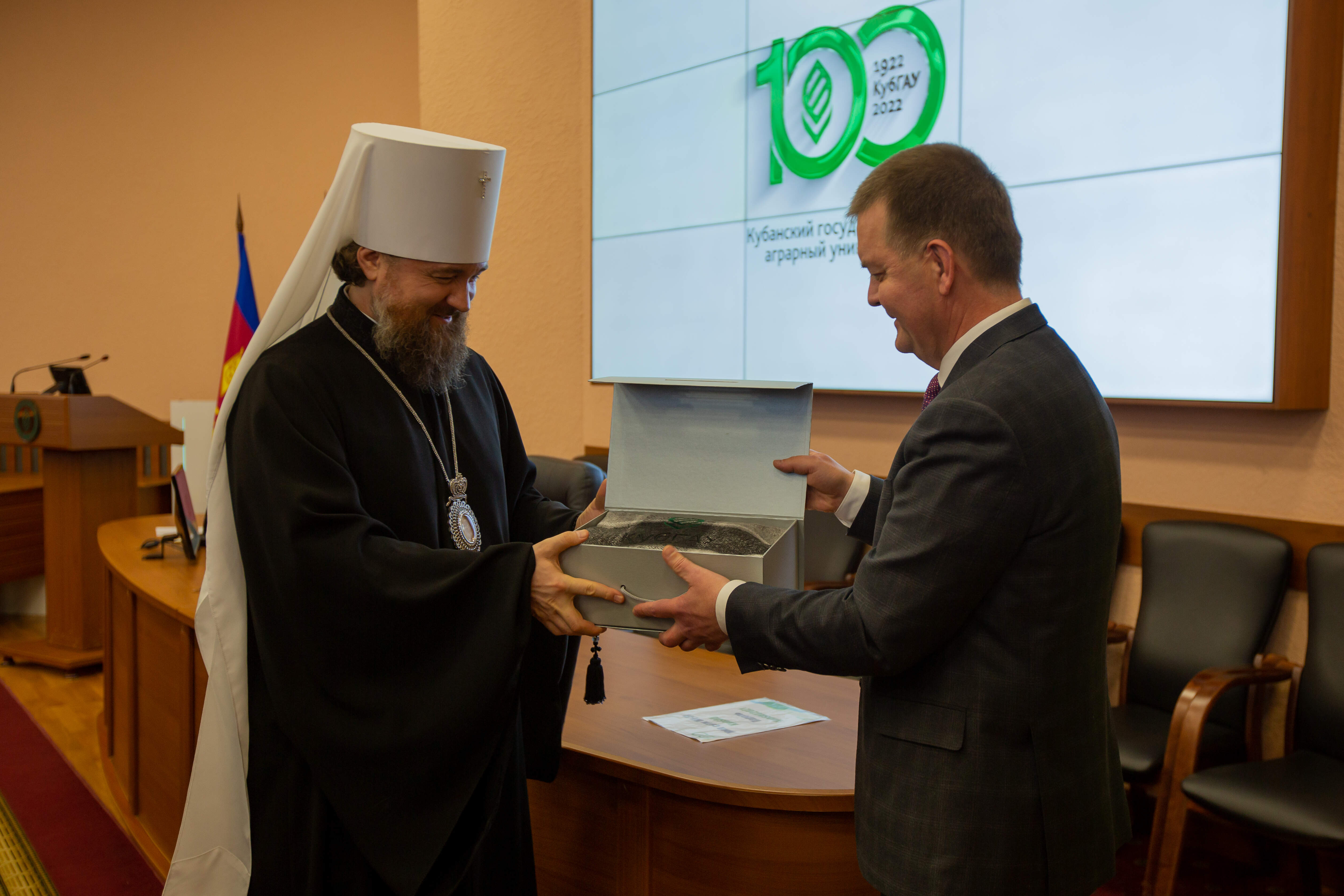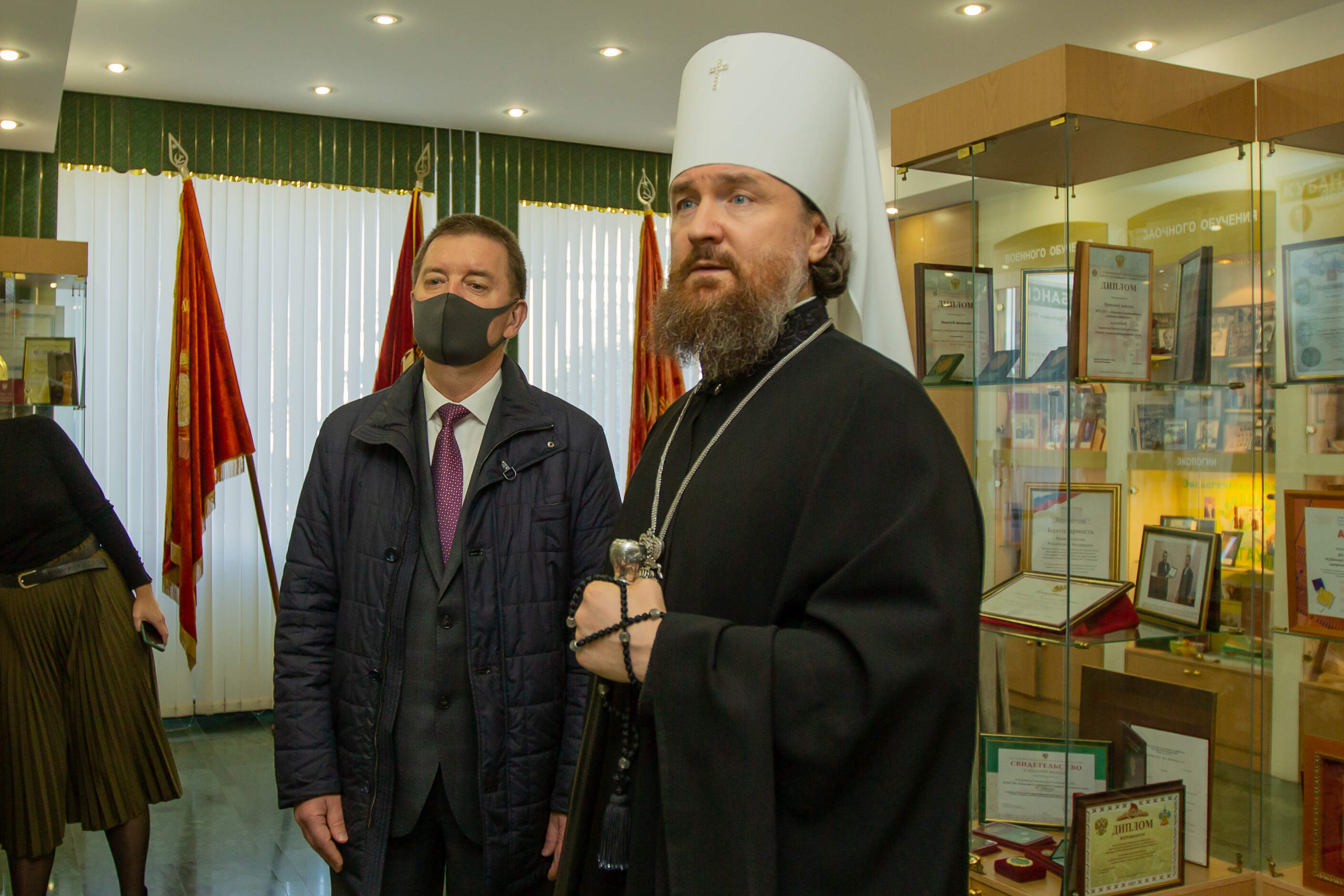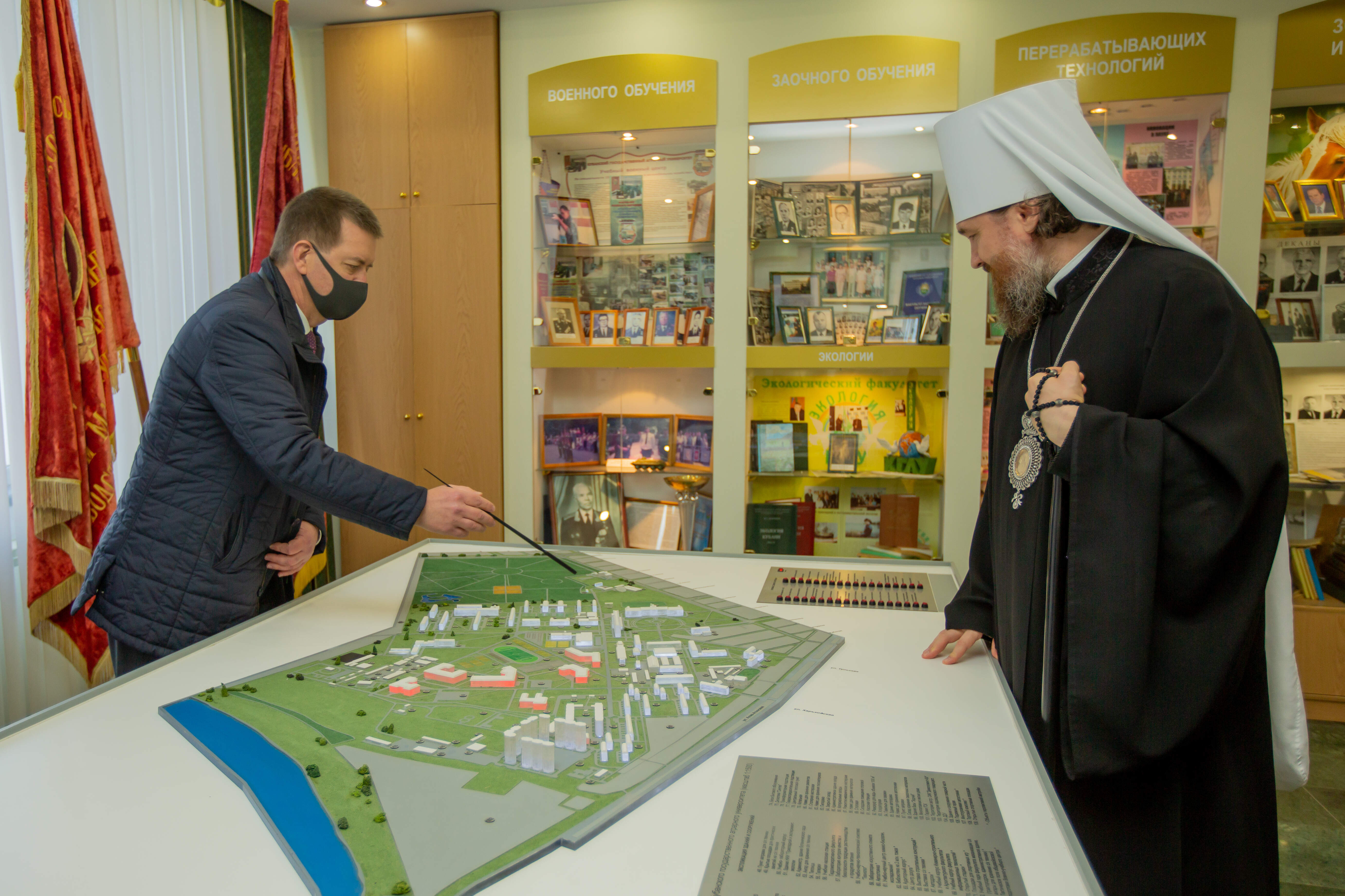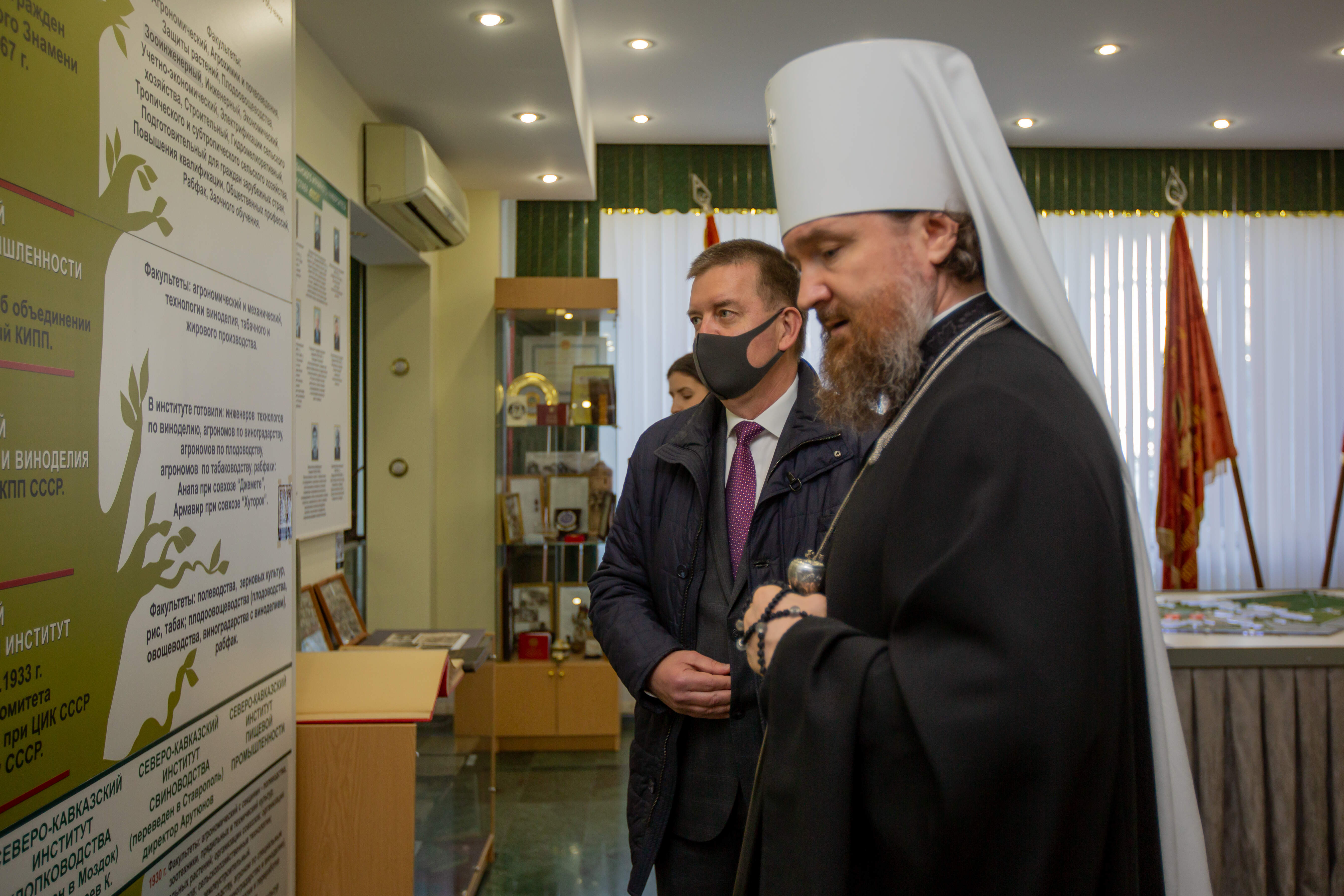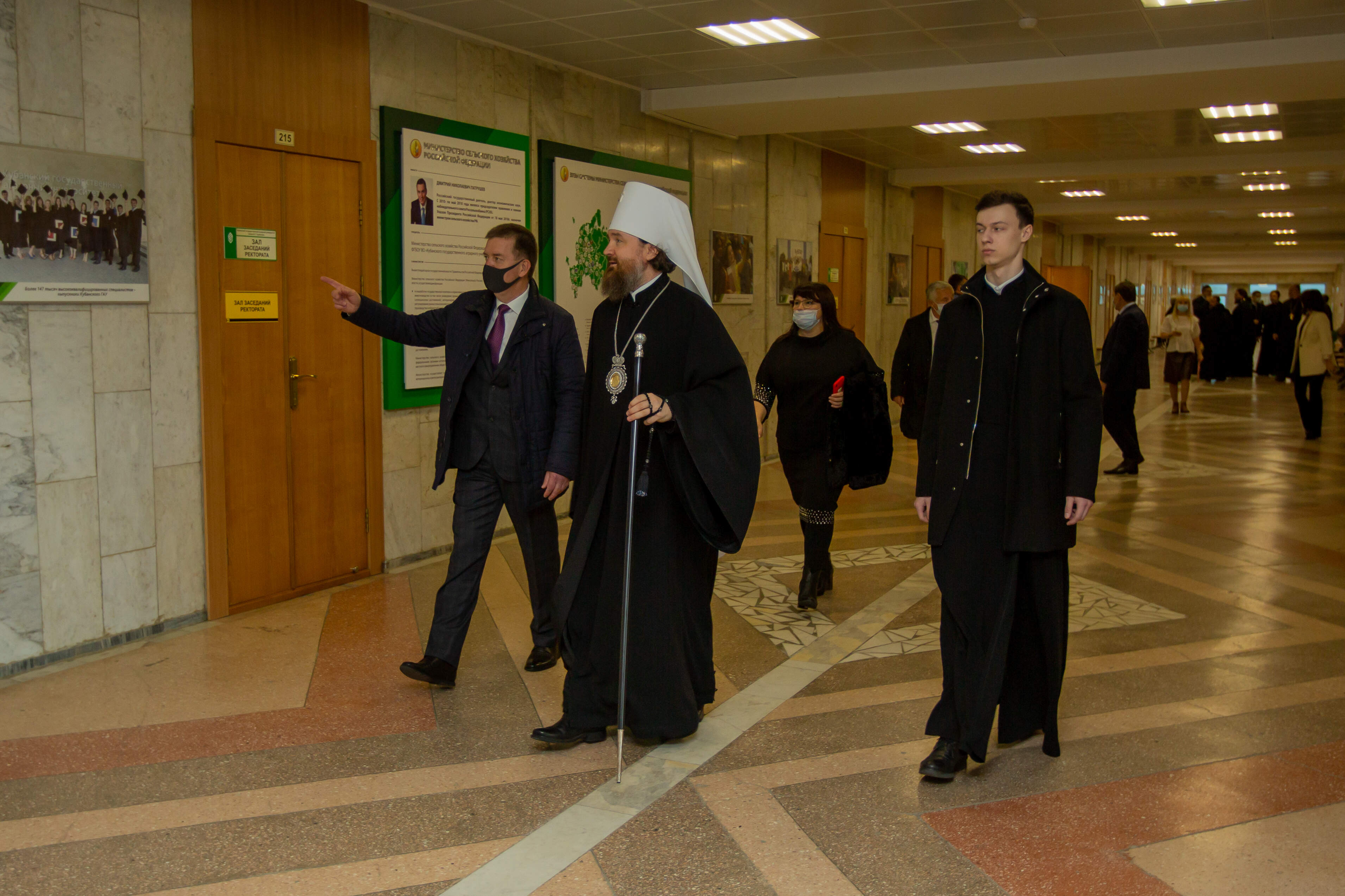Для почетного гостя была проведена экскурсия по территории университета. Ректор Кубанского ГАУ Александр Трубилин рассказал Владыке Григорию об истории вуза, достижениях и работе со студентами. Воспитательная работа является неотъемлемой составляющей образовательного процесса. Тесное взаимодействие с Екатеринодарской и Кубанской епархией, духовенством храма при университете приносит добрые плоды. Студенты Кубанского ГАУ посещают богослужения, участвуют в приходской жизни, принимают участие в беседах со священнослужителями. Аграрный вуз Кубани открыт к общению с православной церковью и рад видеть у себя в гостях главу Кубанской митрополии.