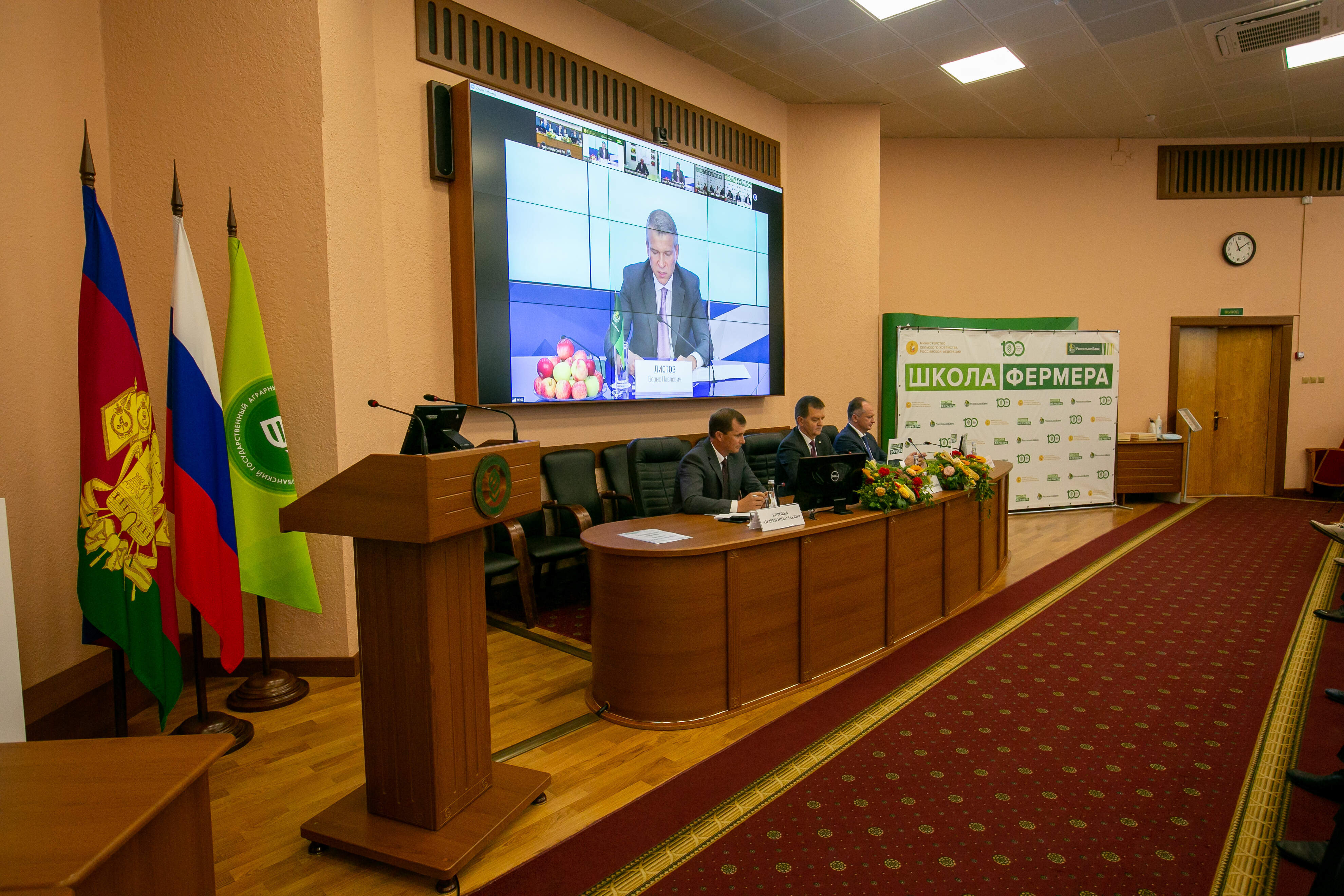 Участников «Школы фермера» и гостей мероприятия в формате ВКС поприветствовали председатель правления АО «Россельхозбанк» Борис Листьев, заместитель министра сельского хозяйства России Оксана Лут, а также председатель совета директоров «Дамате» Наум Бабаев.