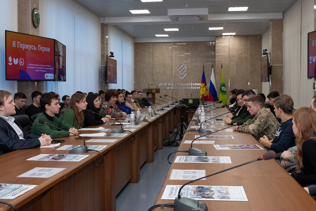 В Кубанском государственном аграрном университете состоялась встреча студентов с участниками специальной военной операции в рамках проекта «Я горжусь. Герои», который реализует Всероссийская ассоциация студенческих патриотических клубов.