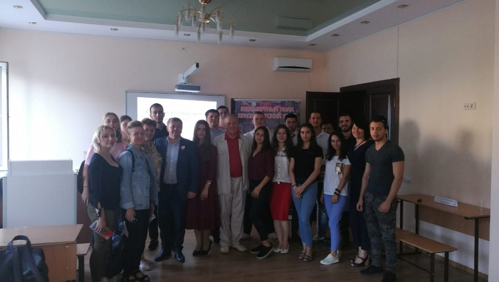 В заключение встречи студенческий актив прослушал познавательную лекцию о бессмертном полке.