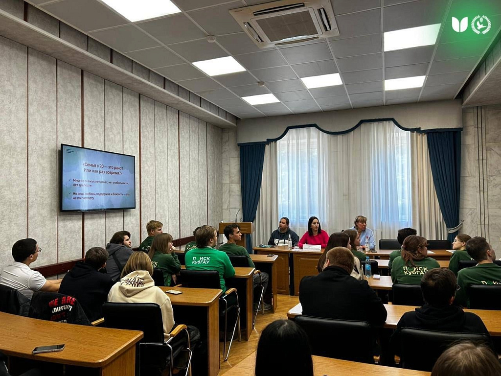 В Кубанском ГАУ прошли 4 видеотрансляции с участием факультетов управления, экономического факультета, плодоовощеводства и виноградарства, пищевых технологий, подготовительный факультет для иностранных граждан, агрохимии и защиты растений. Хочется отметить, что в Кубанском ГАУ присутствовали эксперты данного проекта Александра Саяпина и Агнес Орлова, которые провели беседу на тему сохранения важности семейных и традиционных духовно-нравственных ценностей, а также смогли ответить на вопросы студентов. Центр патриотического воспитания выражает благодарность заместителям деканам по воспитательной работе в организации и проведении национальных гостиных.