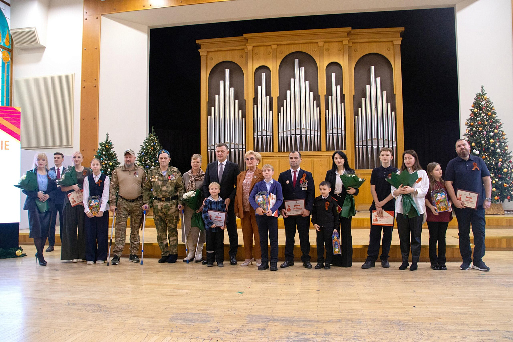 Особой чести удостоились семьи героев, посмертно удостоенных высших государственных наград. На сцену были приглашены представители фамилий Шемякиных, Гусаровых, Мамедовых, Канарёвых и Мижурко. Со словами благодарности и поддержки к ним обратились ветеран военной службы и член Совета ветеранов ГУ Росгвардии Краснодарского края, генерал-майор Николай Долонин, а также дважды награжденный орденом Мужества, лауреат программы «Герои Кубани», депутат городской Думы Георгий Кольцов, возглавляющий комитет по делам военнослужащих, участников специальной военной операции, членов их семей и казачьих вопросов. Семьям вручили подарки и памятные дипломы.
