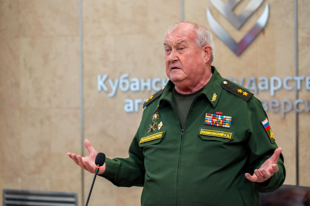 В Кубанском государственном аграрном университете состоялась встреча студентов с Константином Пуликовскиим — советским и российским военным и государственным деятелем, генерал-лейтенантом запаса. Диалог прошёл в рамках проекта «Я горжусь. Герои» и объединил студентов экономического факультета, активистов патриотического клуба «Поиск» и юнармейцев Динского района, для которых до мероприятия была организована экскурсия по объектам КубГАУ. Ребята познакомились с учебной и научной инфраструктурой вуза, побывали в аудиториях и лабораториях, узнали о направлениях подготовки и возможностях, которые университет открывает для студентов.