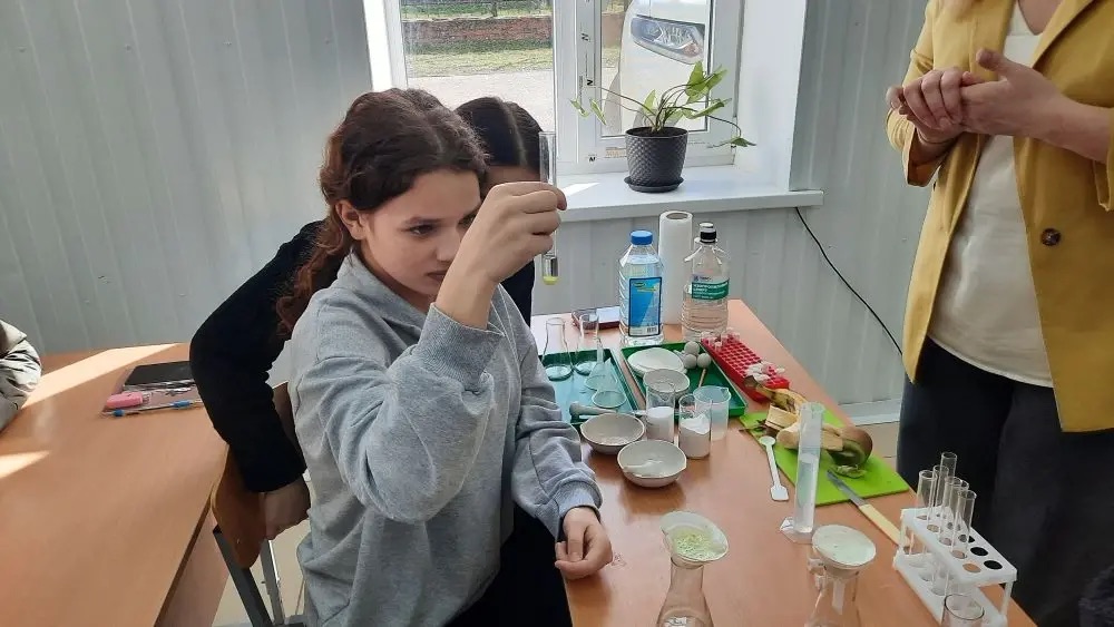 Также учащимся колледжа рассказали о роли минеральных удобрений в повышении урожайности, качества сельхозкультур, выращиваемых на Кубани, в сохранении почвенного плодородия. В лабораторной обстановке проведён качественный анализ различных видов минеральных удобрений для определения их химического состава. Ребята активно участвовали в проведении химического анализа.