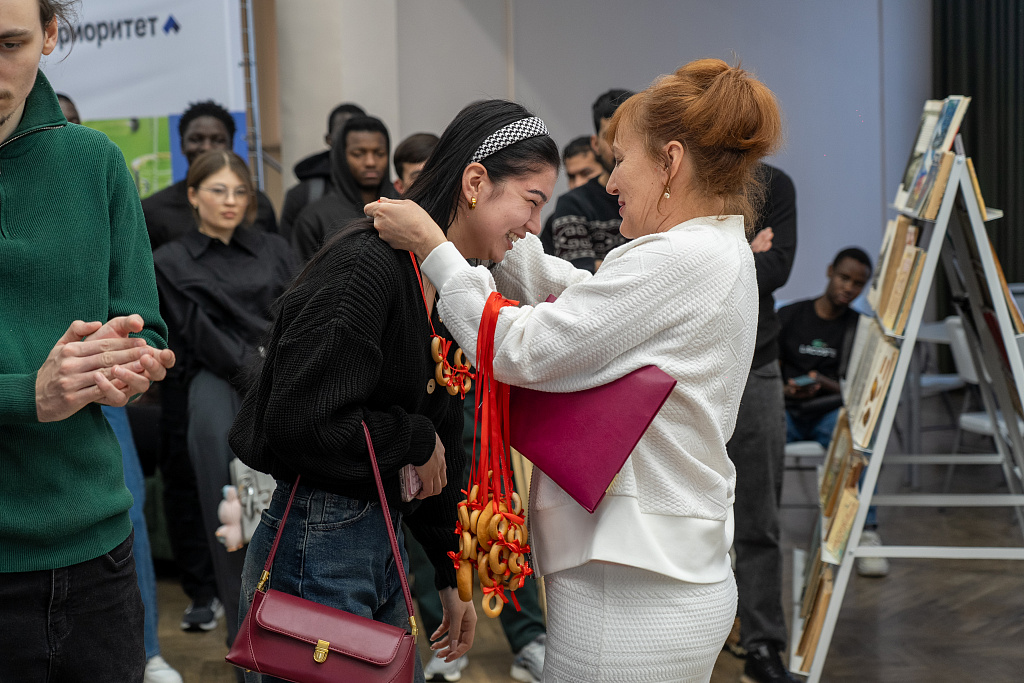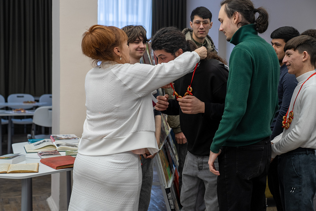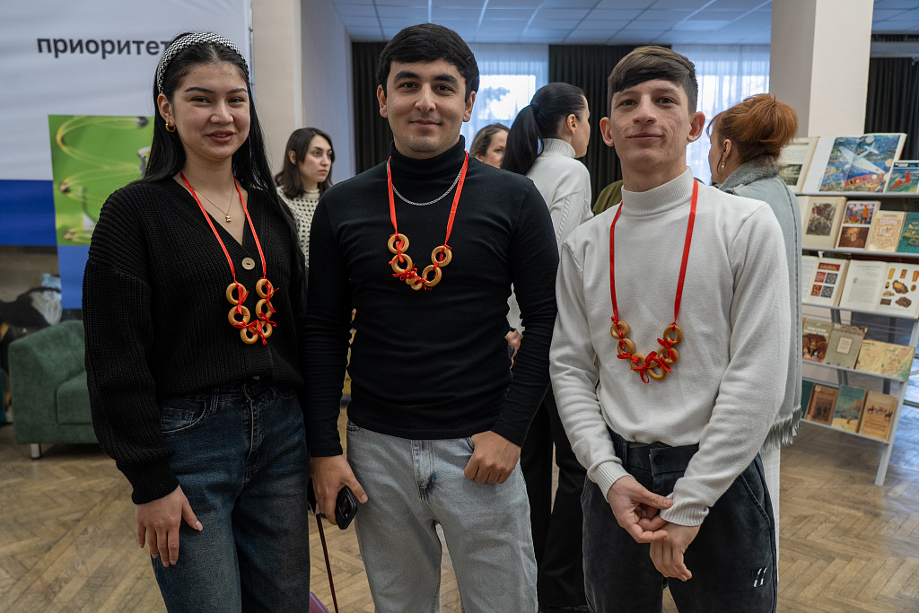 Также сотрудники подготовили для гостей увлекательную мини-викторину, в которой студенты смогли проявить эрудицию и посоревноваться друг с другом, а победители получили забавный символический приз – оригинальные бусы из традиционных русских угощений: ароматных бубликов и хрустящих баранок.
