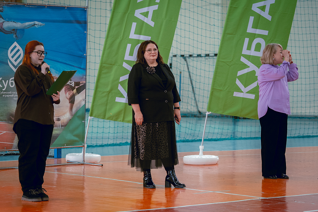 В спорткомплексе КубГАУ состоялось открытие «АгроЛиги» – Всероссийской спартакиады при поддержке Минсельхоза России. С приветственным словом к студентам обратилась проректор по международной и молодёжной политике Татьяна Полутина. Она пожелала участникам удачи, честной борьбы и достойных результатов.