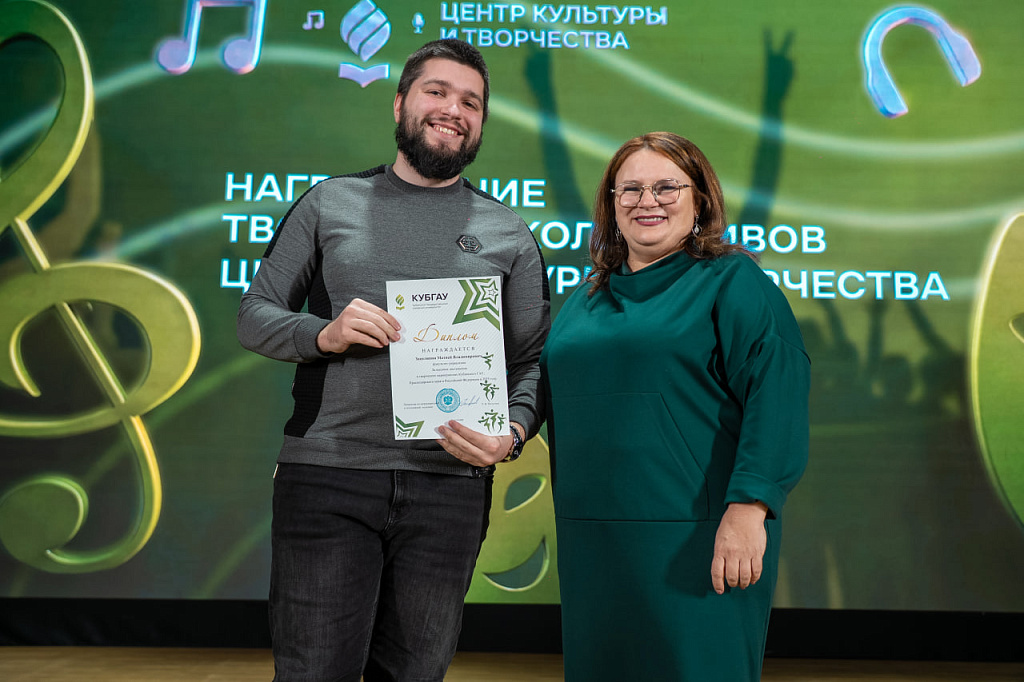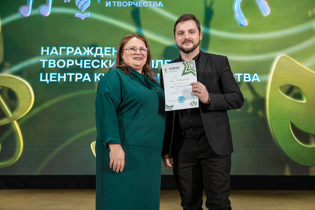– Сегодня мы собрались, чтобы подвести итоги творческого 2025 года и наградить тех, кто действительно повлиял на его события. Это лауреаты и призёры фестивалей, конкурсов и студенческих вёсен, люди, которые на протяжении года представляли университет на разных сценах. Вы творческая элита Кубанского ГАУ, и ваши успехи заслуживают самых искренних аплодисментов.