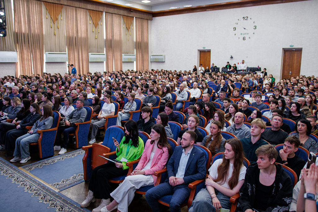 Официальная часть проходила, как всегда, в актовом зале университета. И, как обычно, зал не смог вместить всех желающих, поэтому была организована видеотрансляция мероприятия в соседние аудитории.